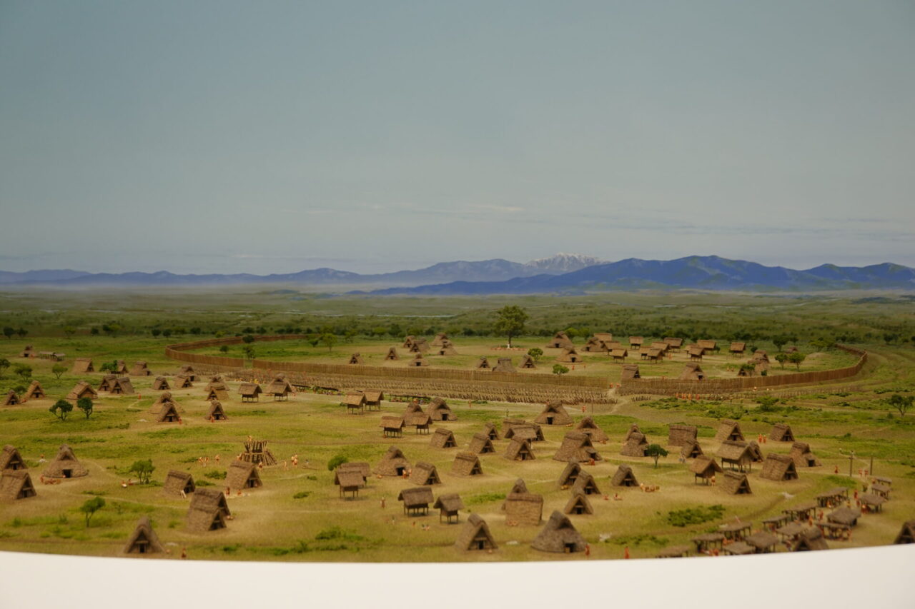 基本展示室1 的亮點,是重現朝日遺跡鼎盛時期的巨大「朝日遺跡全景模型」。聚落結構、人們的生活場景與周邊地形一目了然,讓參觀者能直覺掌握整體樣貌。館內亦設有可透過望遠鏡觀察細節、搭配語音導覽的沉浸式體驗,彷彿親身走進彌生時代。