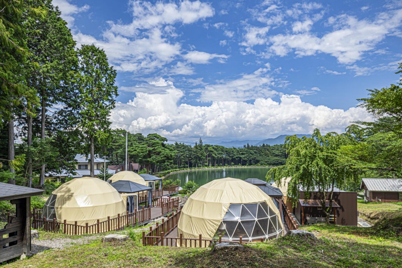 広大な敷地にわずか4棟のドームテントを配した、プライベート感あふれる贅沢な空間が魅力です。日中は木漏れ日と鳥のさえずりに癒され、夜は標高約850mの澄んだ空気に浮かぶ満天の星を仰ぐー。
