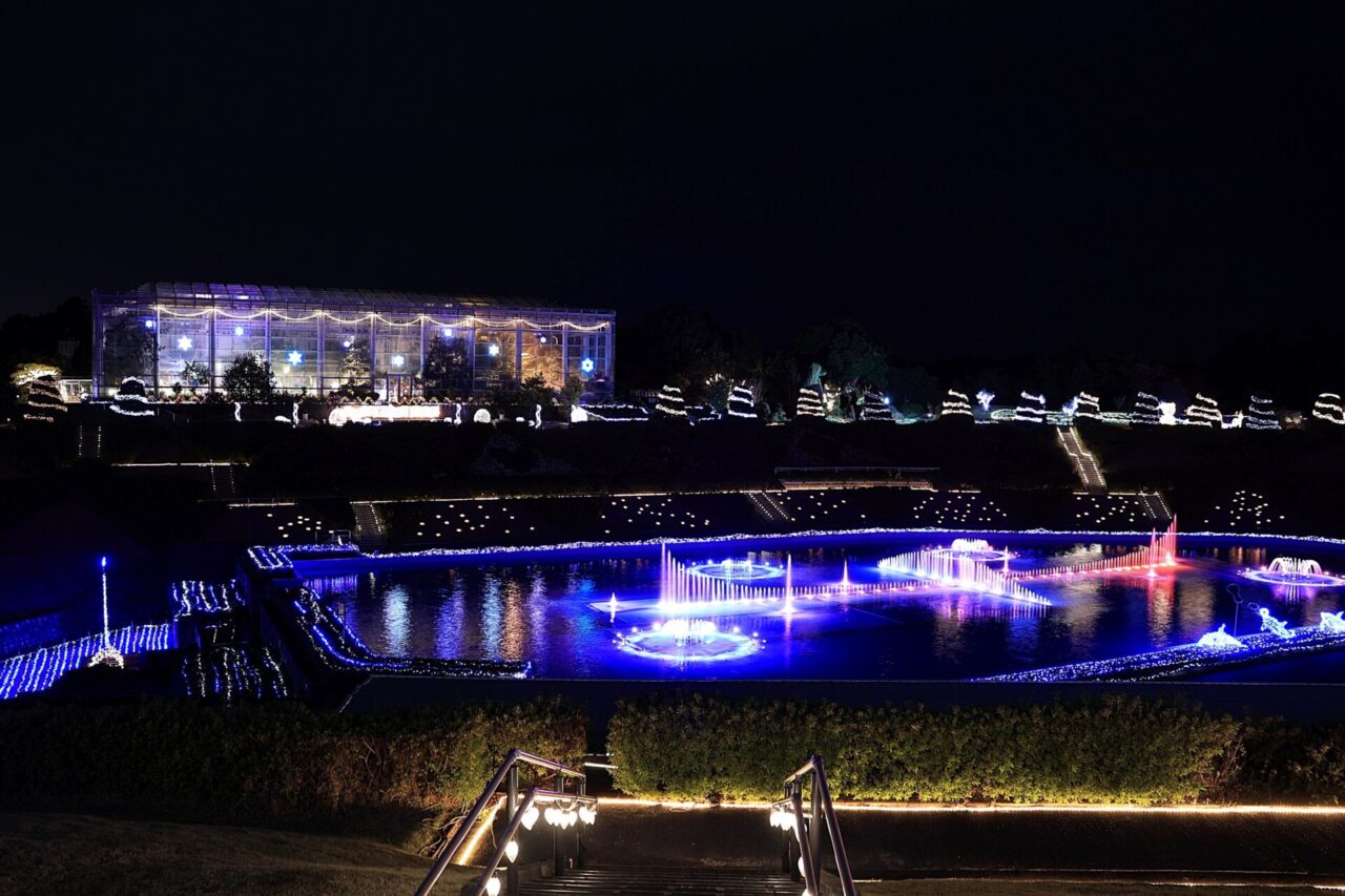 夜間開園の時期なら、冬を彩るイルミネーションまでー。黄昏時から灯りが灯る夜へと移ろう幻想的な「二段構え」の景色は、秋冬のフラワーパークが贈る、この上なく贅沢な時間の過ごし方です。