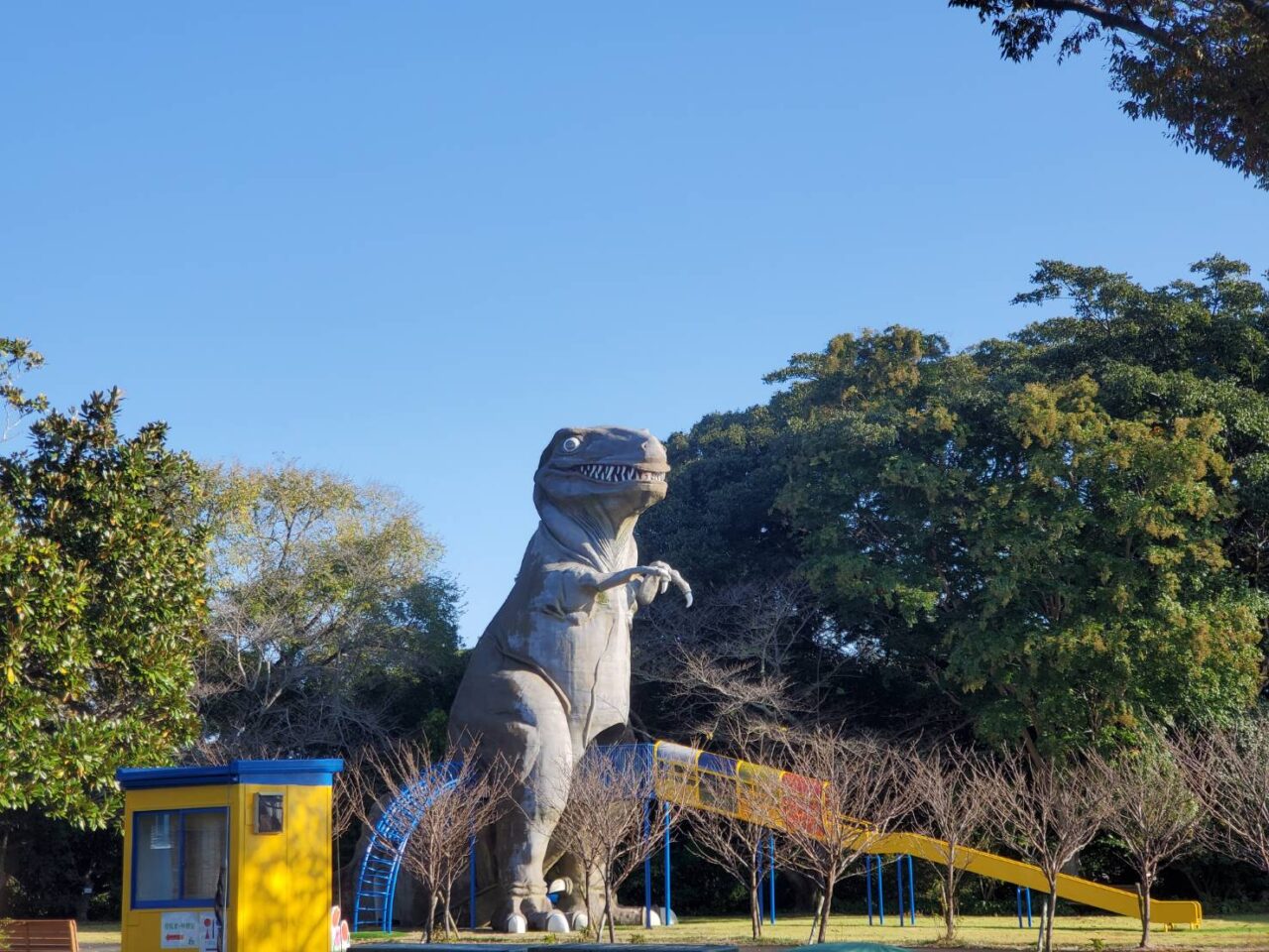 小さな子ども連れの強い味方が、園内に広がる「こども広場」。恐竜すべり台やおもしろ自転車、ふわふわ、観覧車などがそろい、花の散策の合間に“思い切り遊ぶ時間”を差し込めるのが嬉しいポイントです。