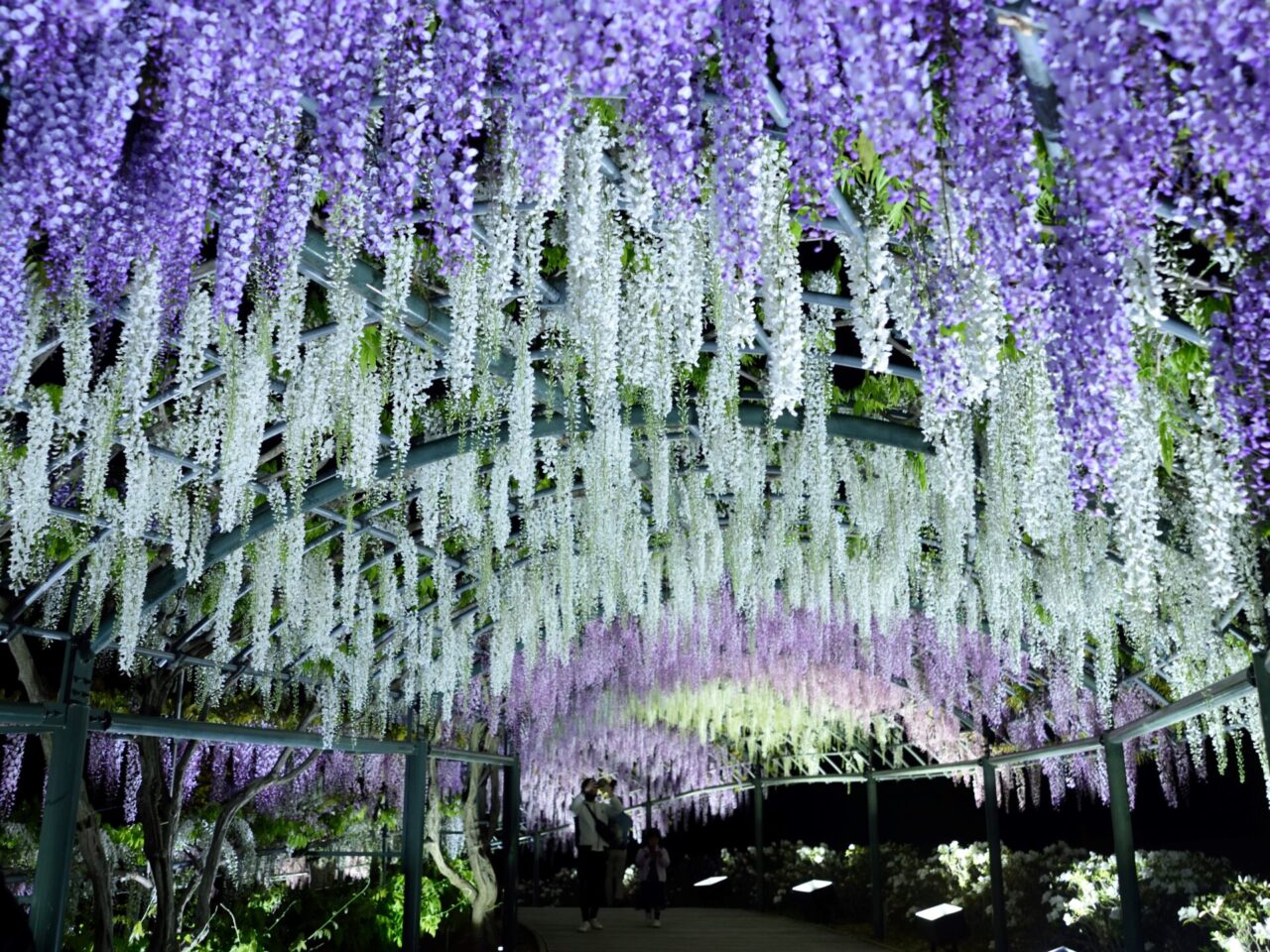 なかでもフジは開花目安が示されており、八重藤(4月中下旬)・野田九尺藤(4月下旬)・白藤(5月初旬)と、種類ごとの移ろいを追えるのが特徴です。旅行日程に合わせて「どの藤を見たいか」で狙いを決めるのもおすすめです。