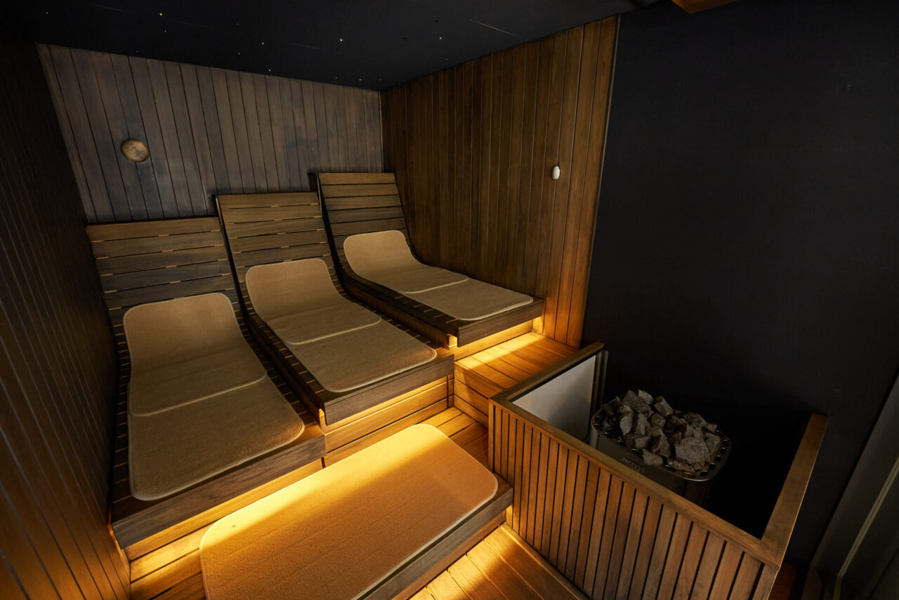 「おふろcafé あげき温泉」内に併設された“サウナラウンジ Serow(セロウ)”は、北欧のサウナカルチャーに着想を得た、男女共用スタイルの本格サウナエリア。