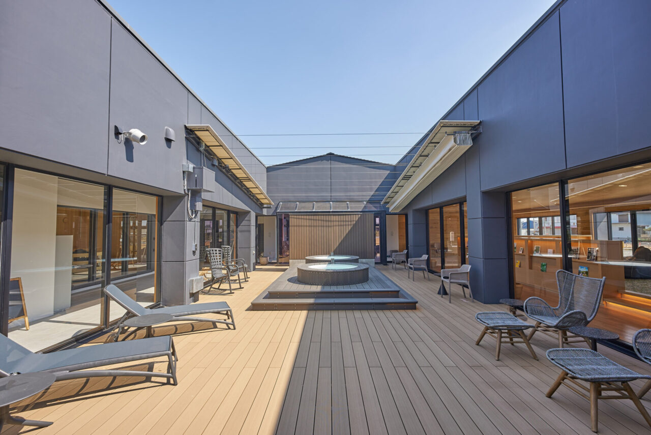 熱と蒸気が織りなす深い温もりのあとには、屋外デッキでの外気浴が待っています。鈴鹿の山々から吹き抜ける風と自然の光が、全身をやさしくリセットしてくれる心地よさです。