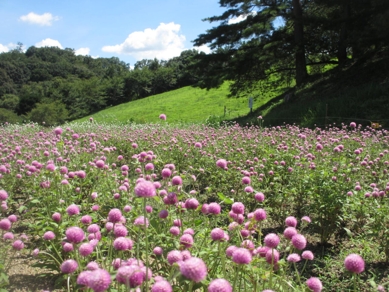 また、隣には見晴らしの良い丘「チェリーセイジの丘」があります。春にはネモフィラ、ルピナス、チューリップ、夏にはタチアオイやチェリーセイジ、冬にはアイスランドポピーが順に咲き誇り、訪れる人を魅了します。