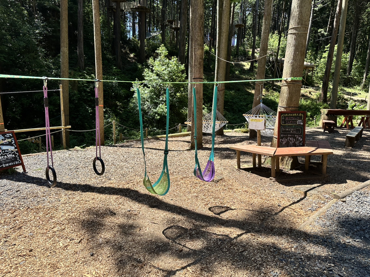 さらに、スイングラインやジャビットなど、自然の風を感じながら体を動かせるアクティビティも。森の黒板やジェンガなど、特別な準備や道具なしで楽しめるものが多いため、“ちょっと森に立ち寄って遊びたい”という場合にも最適です。