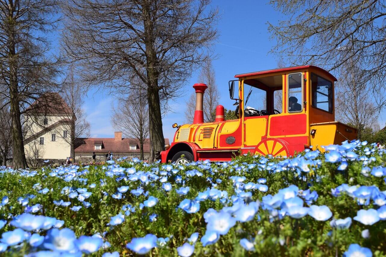 In spring, tulips, roses, nemophila, cherry blossoms, and rapeseed flowers bloom. Especially noteworthy is the nemophila field, which spreads a refreshing blue color across the landscape, creating a breathtaking sight.