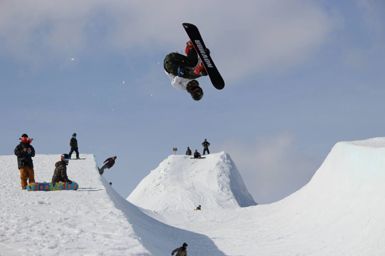 Takasu Snow Park features a freeride park packed with exciting features such as waves, mini kickers, and other creative obstacles along a lift-accessible course.